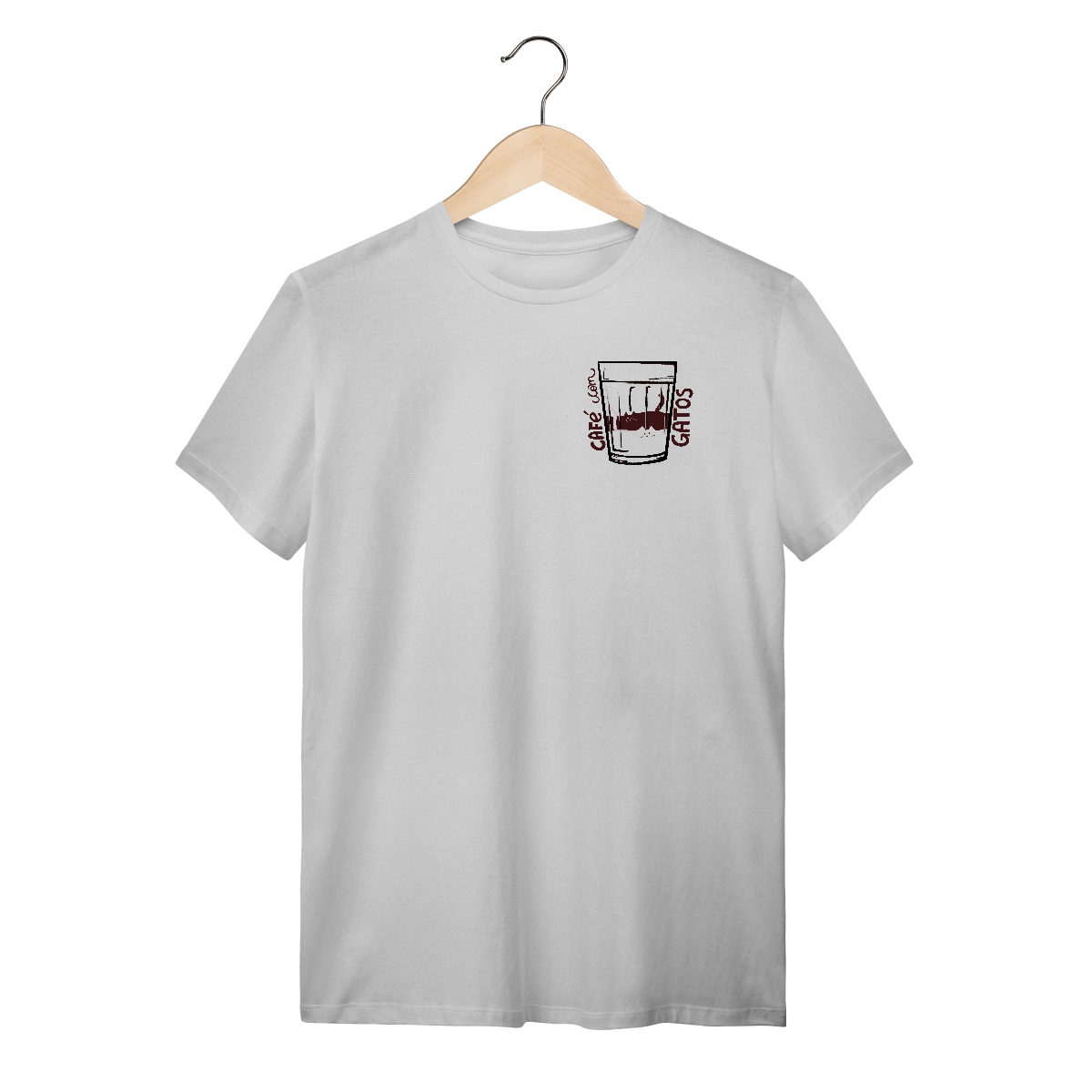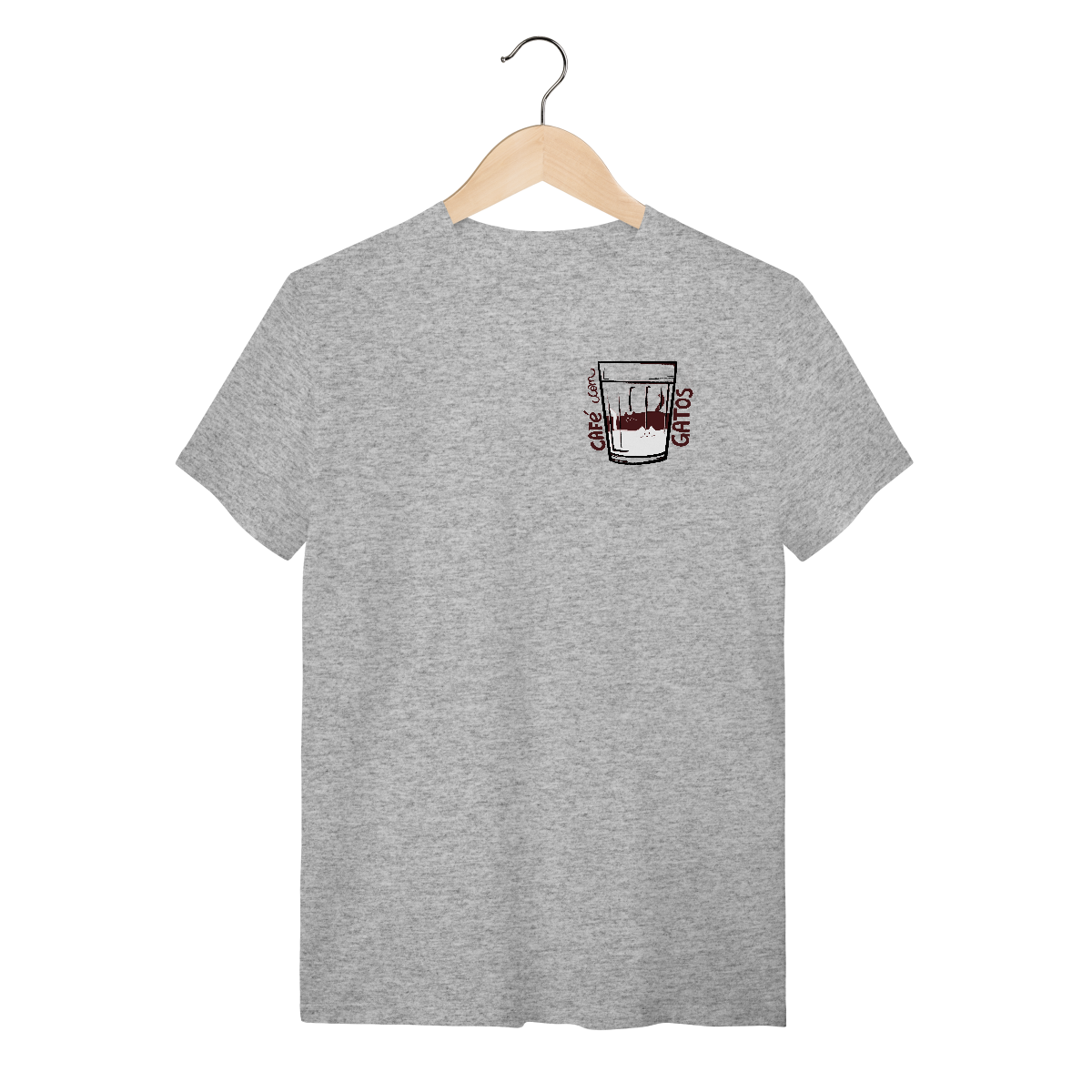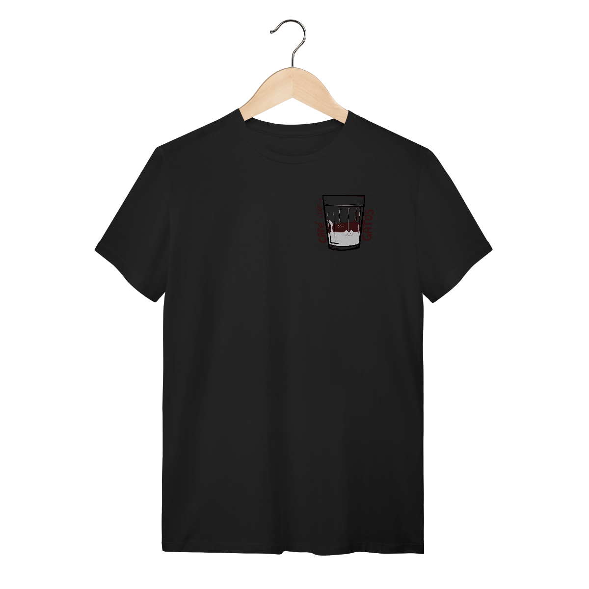 Sua combinação perfeita está aqui! Camiseta Catmosfera com a estampa original "Café com Gatos". Celebre seus amores em uma peça divertida e cheia de estilo. Ideal para gateiros e amantes de café.