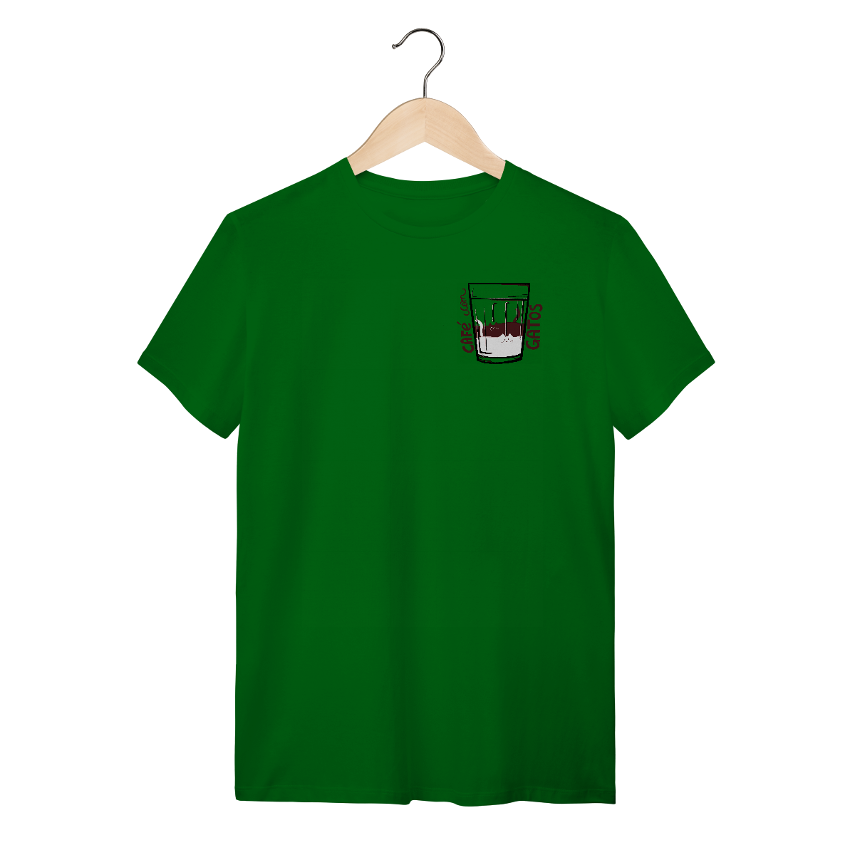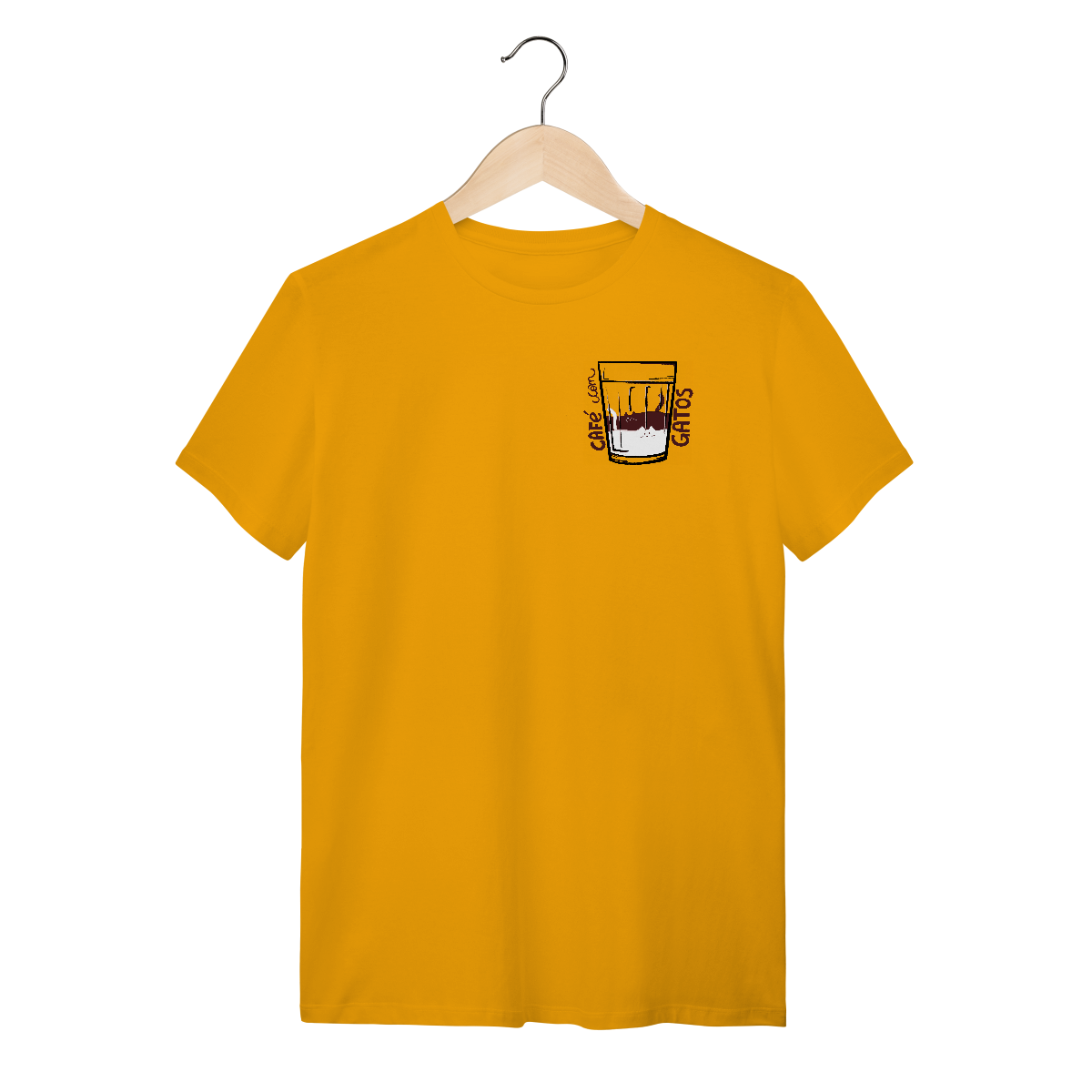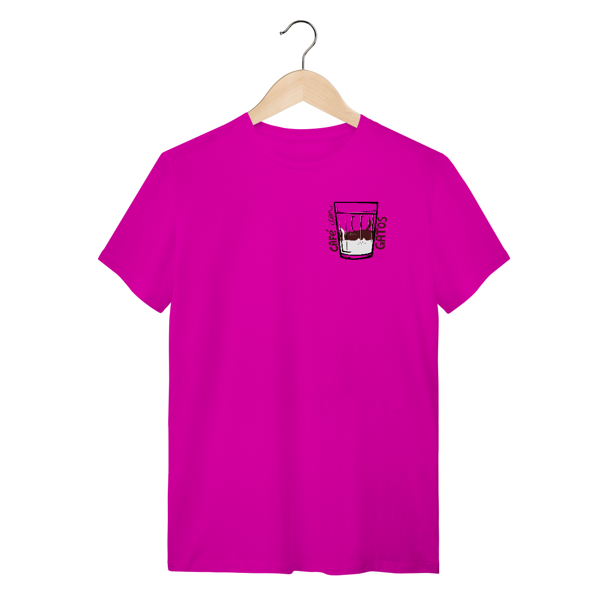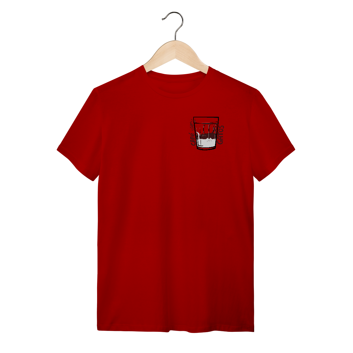 Sua combinação perfeita está aqui! Camiseta Catmosfera com a estampa original "Café com Gatos". Celebre seus amores em uma peça divertida e cheia de estilo. Ideal para gateiros e amantes de café.
