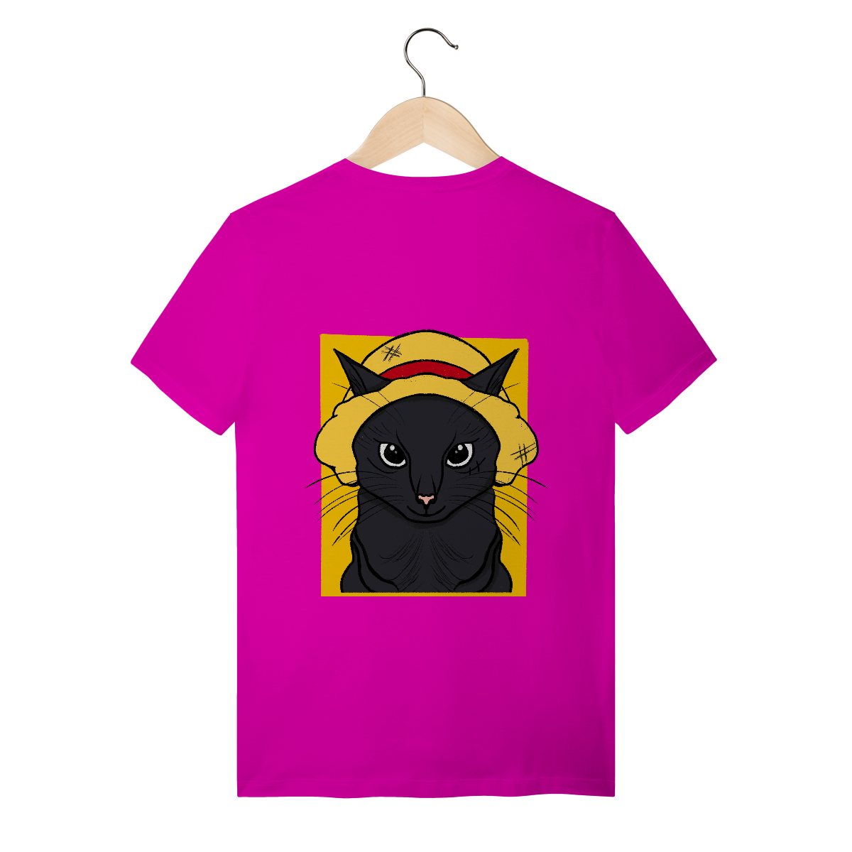 Prepare-se para zarpar em uma aventura pelos sete mares (ou pelo menos pela sua vizinhança) com a camiseta Gato Chapéu de Palha! Esta estampa hilária e cativante traz um adorável gato preto vestindo o icônico chapéu de palha do mais famoso pirata dos animes. Se você é fã de One Piece e ama gatos, encontrou a sua camiseta do tesouro!