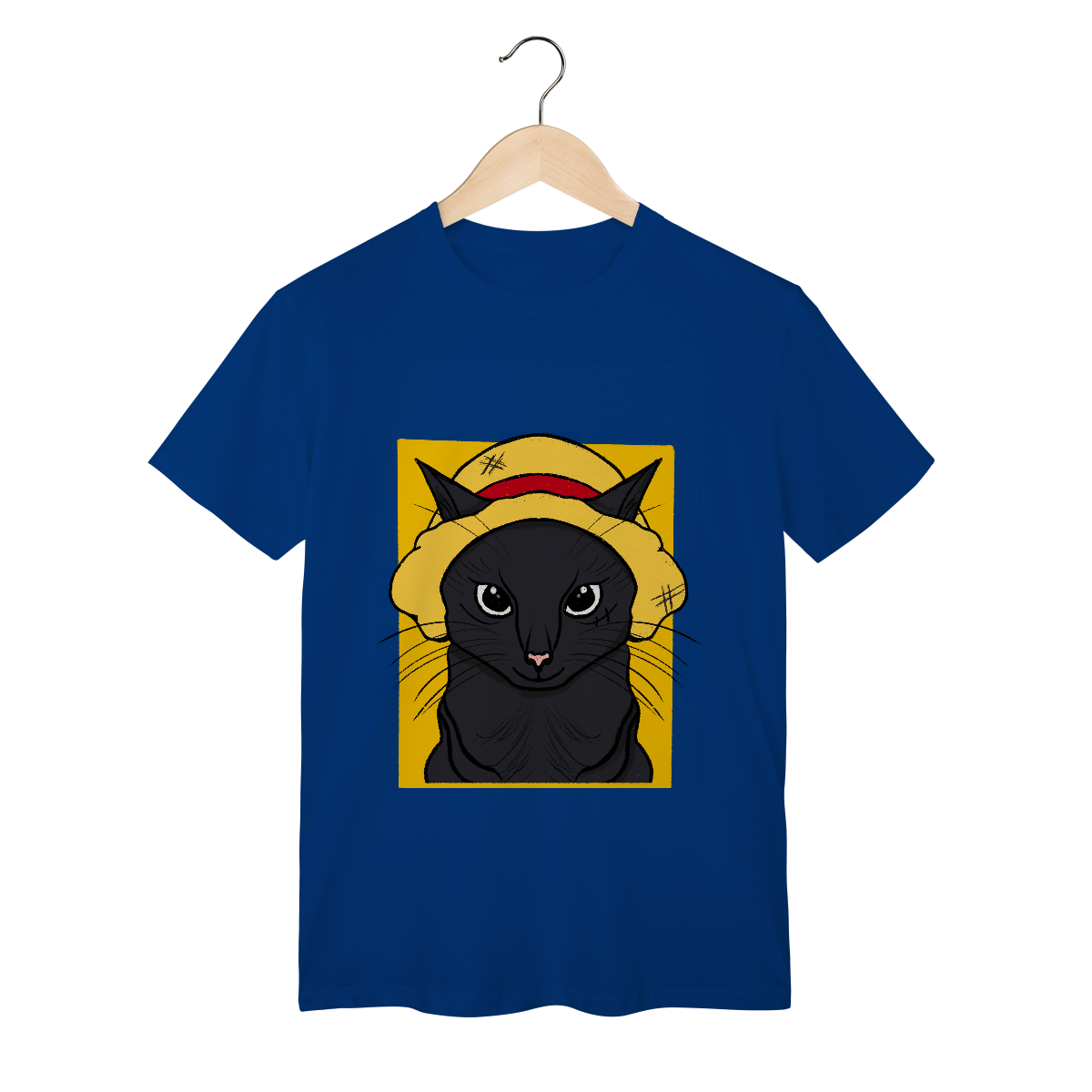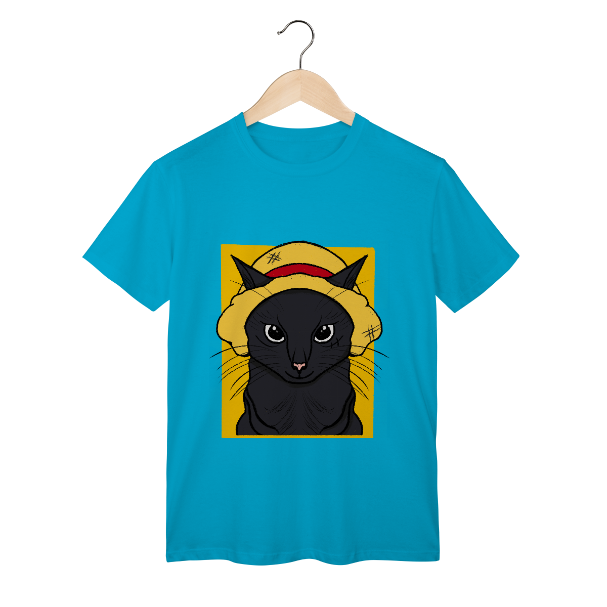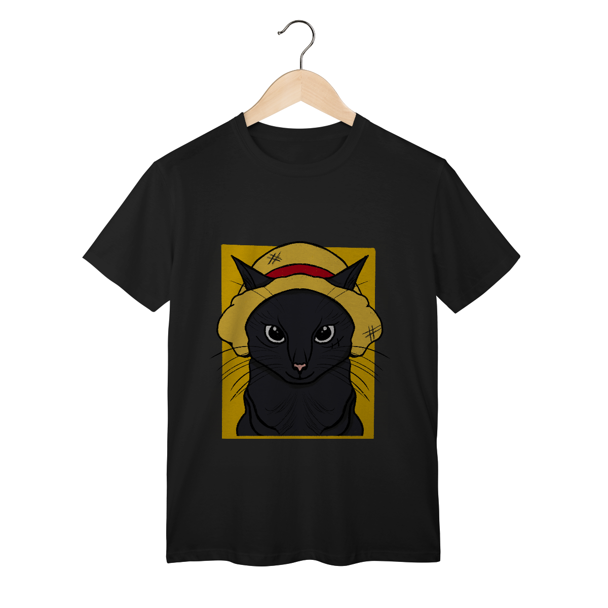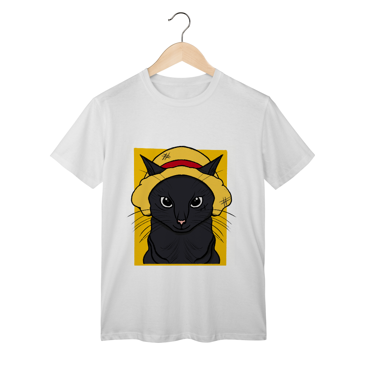Se você ama One Piece e gatos, precisa da camiseta Gato Chapéu de Palha! Uma estampa divertida e original. Encontre a sua e embarque nessa aventura!