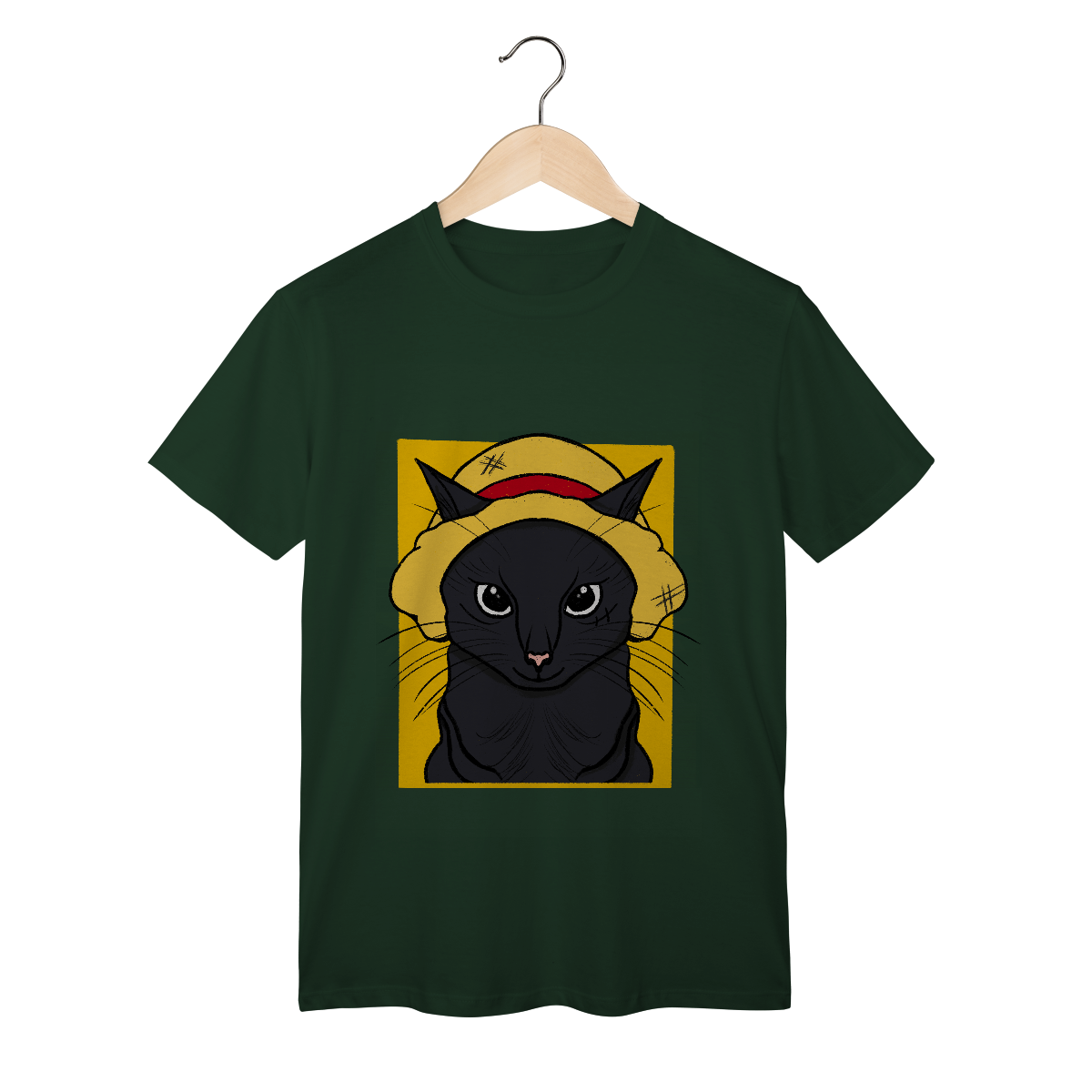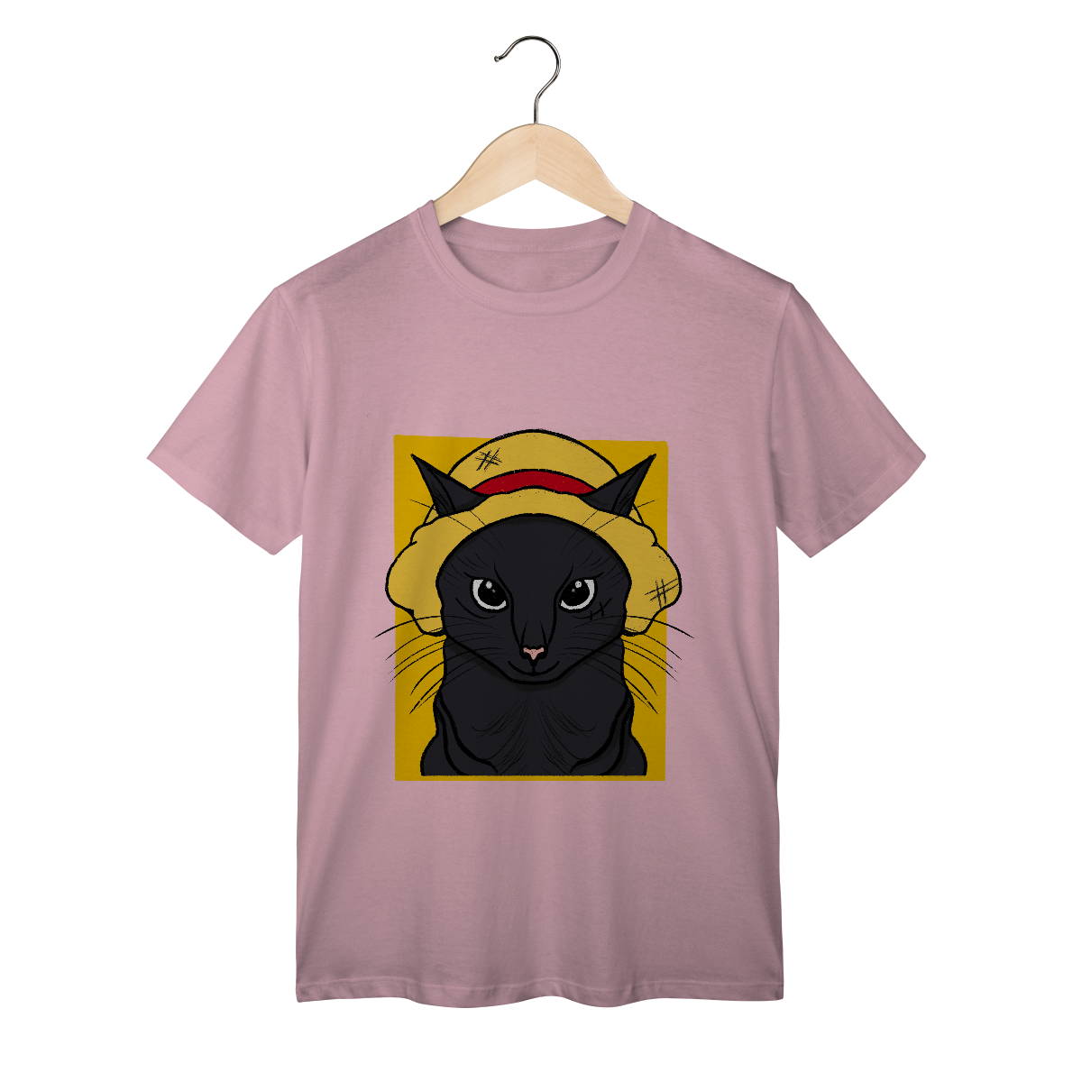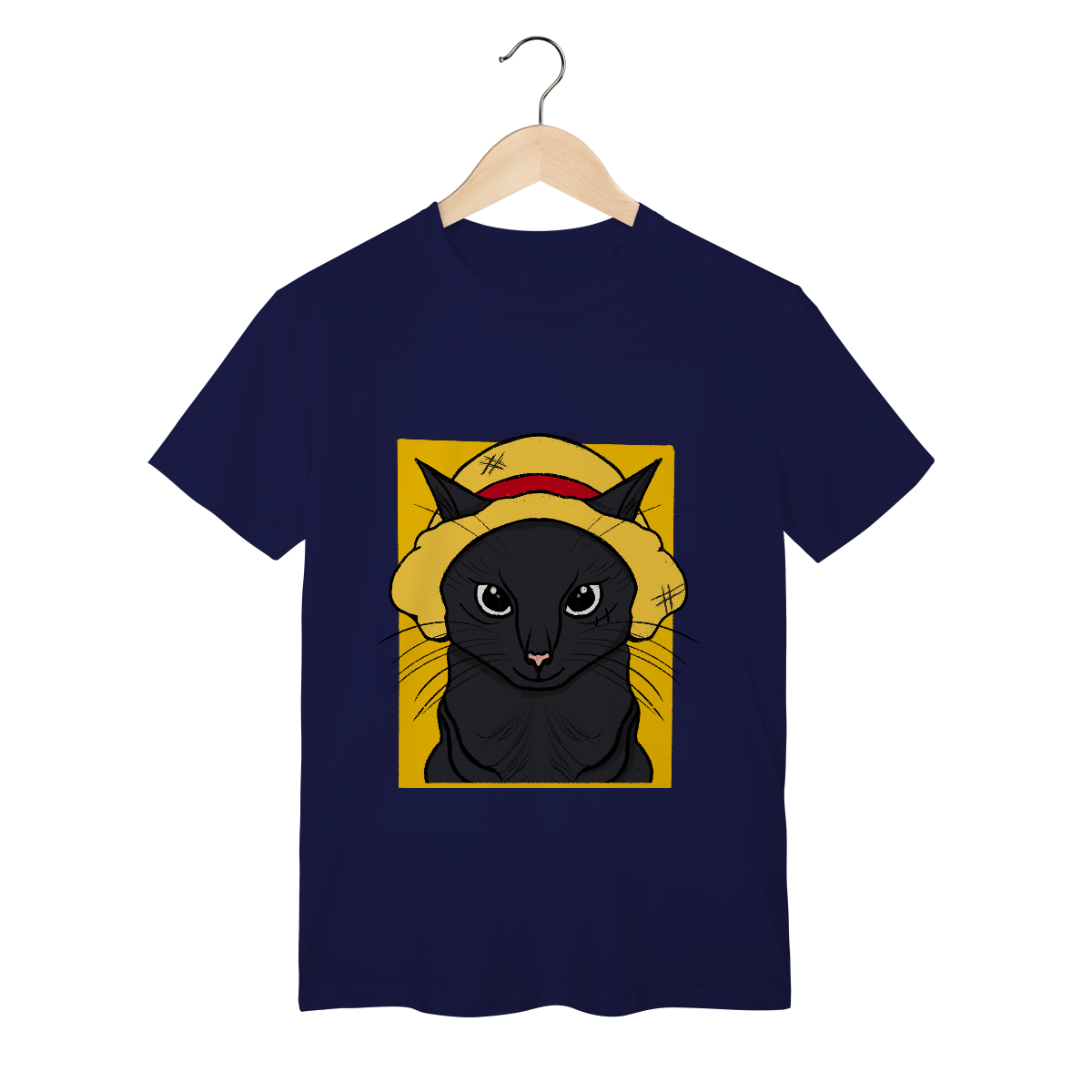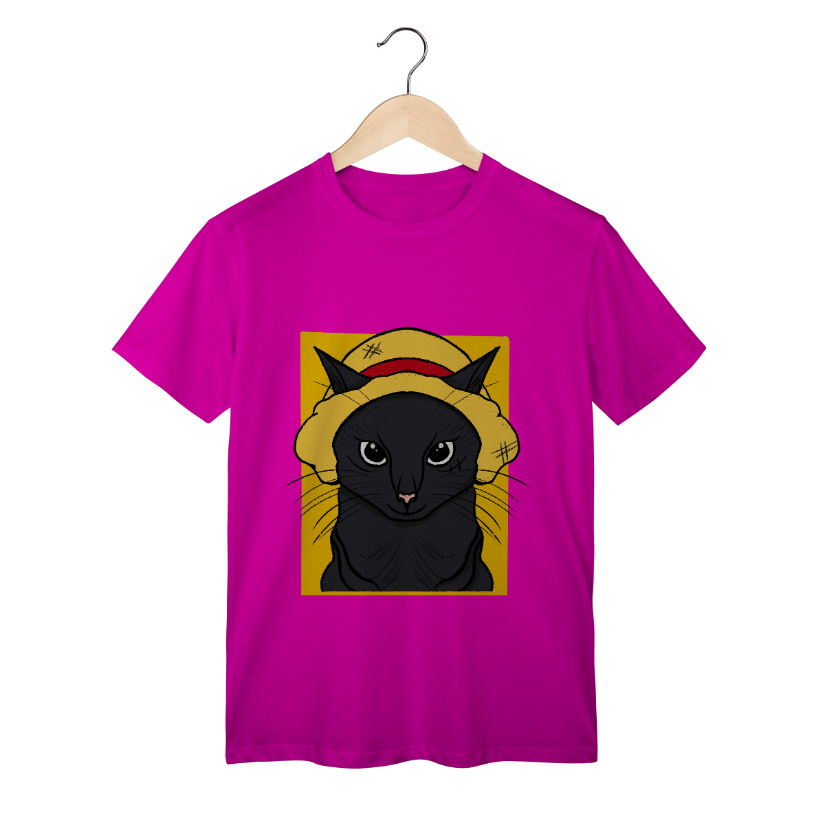Se você ama One Piece e gatos, precisa da camiseta Gato Chapéu de Palha! Uma estampa divertida e original. Encontre a sua e embarque nessa aventura!