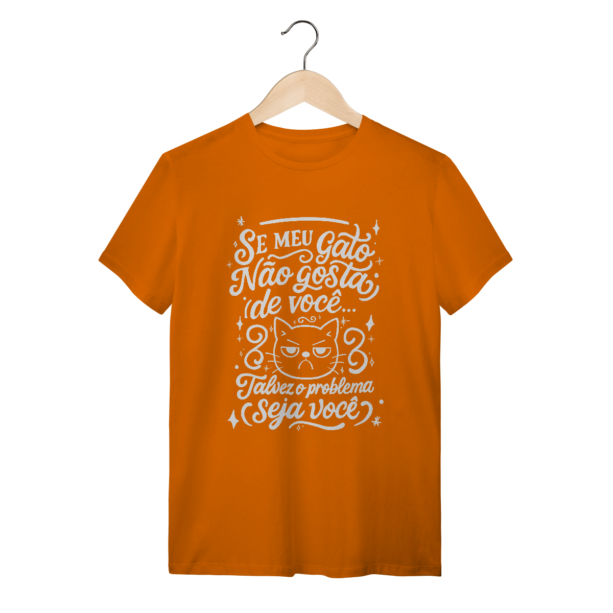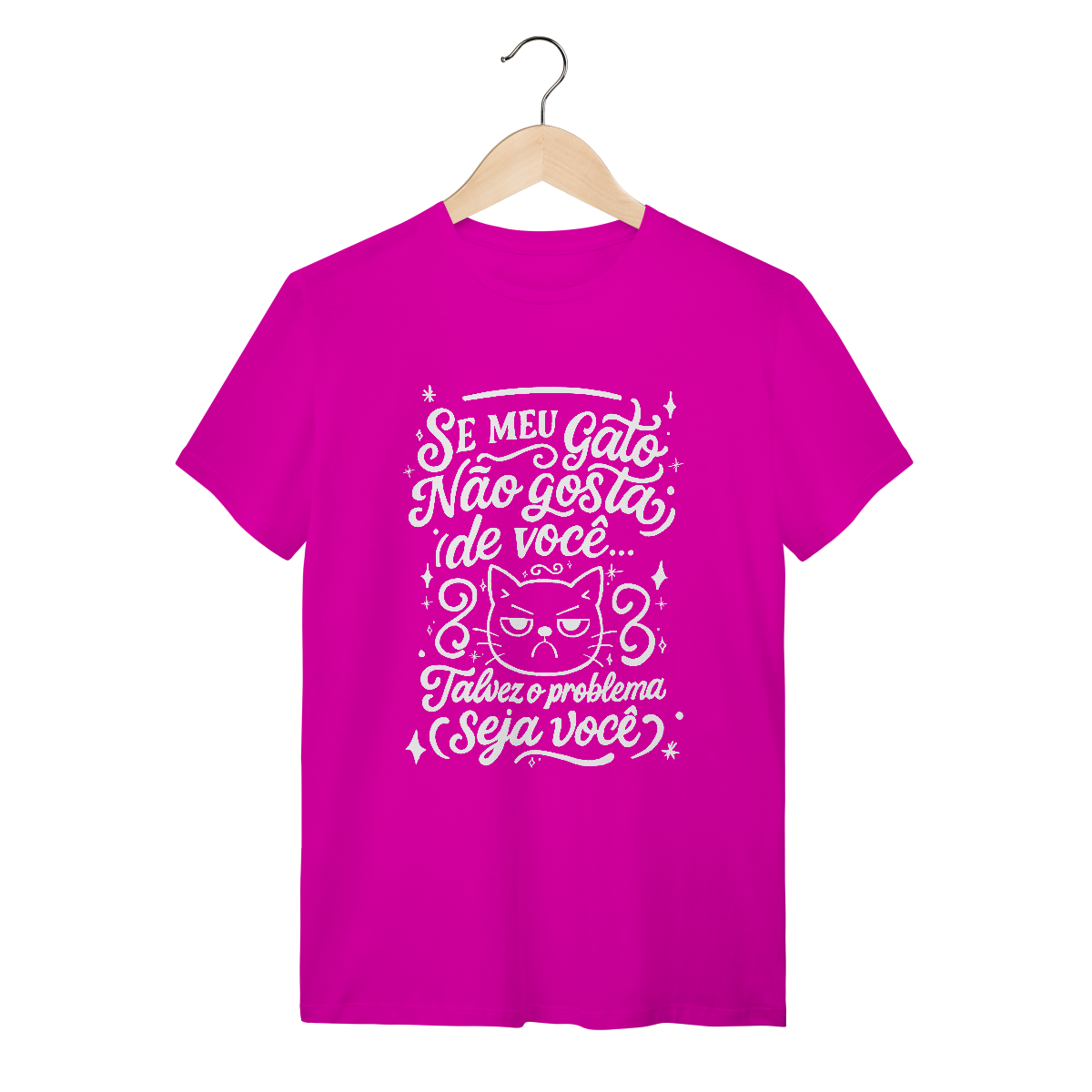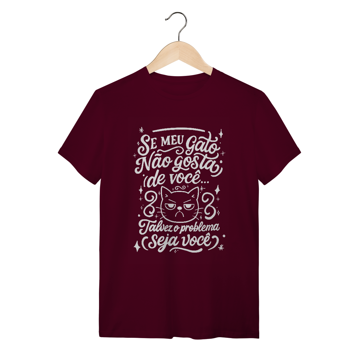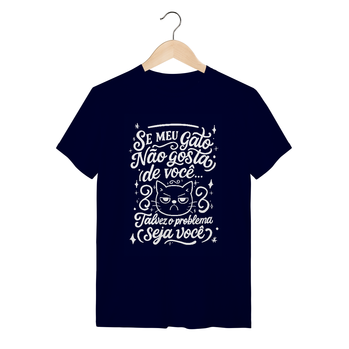 Aviso dado! Camiseta Catmosfera com a estampa divertida "Se meu gato não gosta de você... Talvez o problema seja você". Perfeita para gateiros sinceros e com senso de humor. Vista a verdade com estilo e atitude felina!