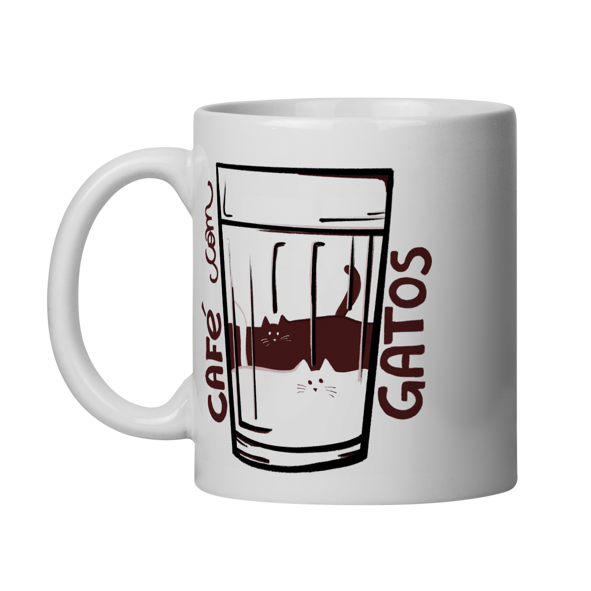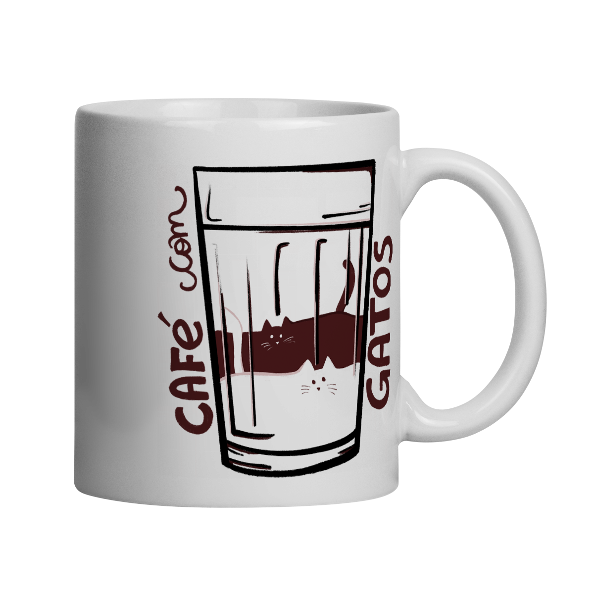 Sua dose diária de amor e cafeína! Caneca Catmosfera com a estampa "Café com Gatos". Perfeita para gateiros e amantes de café que valorizam a combinação mais gostosa da vida. Comece o dia com estilo e fofura!