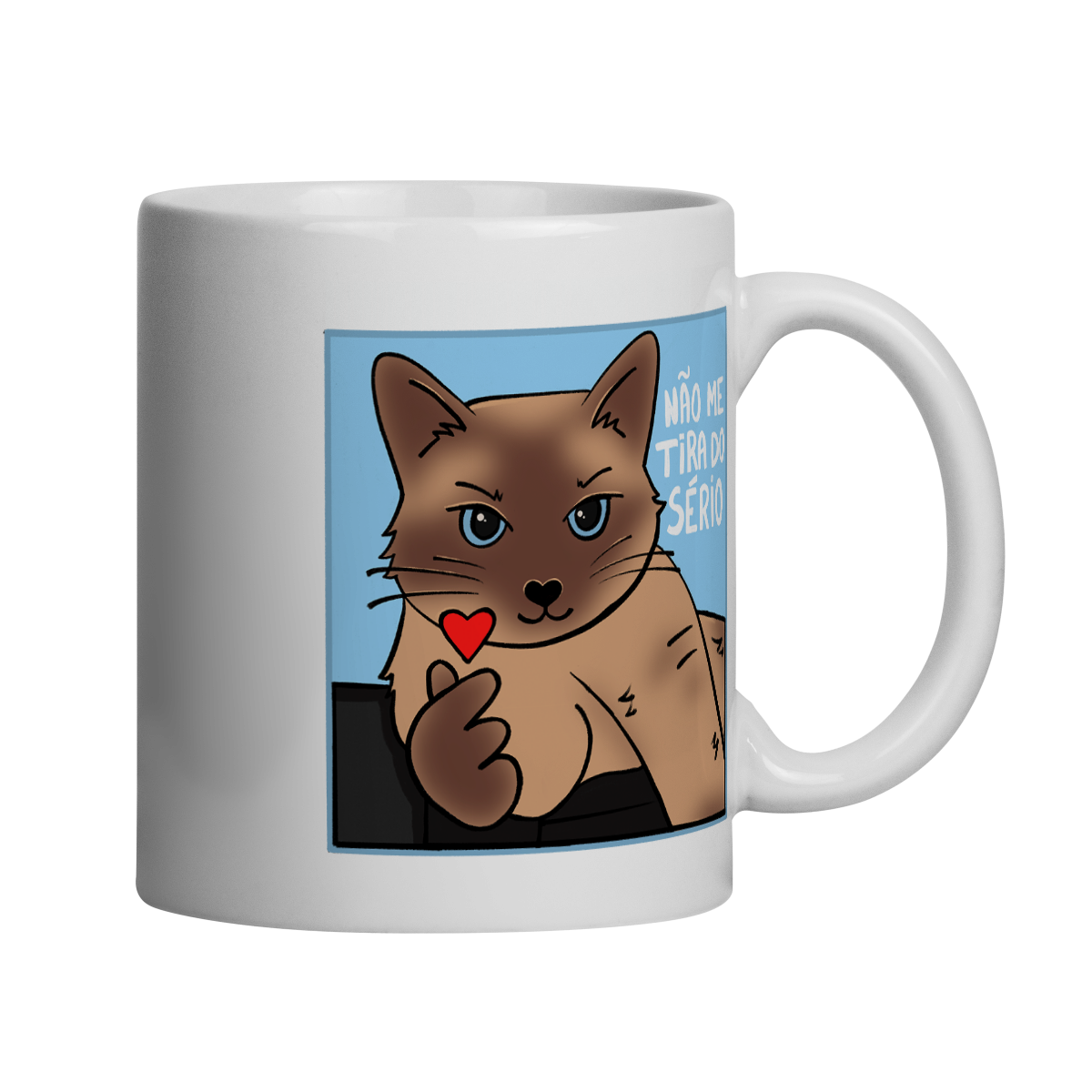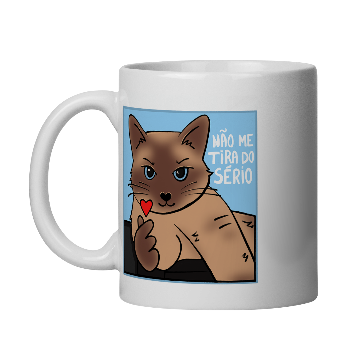• Comece o dia com "catitude"! Caneca exclusiva Catmosfera com a divertida estampa "NÃO ME TIRA DO SÉRIO". Perfeita para gateiros com senso de humor que não abrem mão de uma boa bebida. Expresse sua personalidade felina em cada gole!
