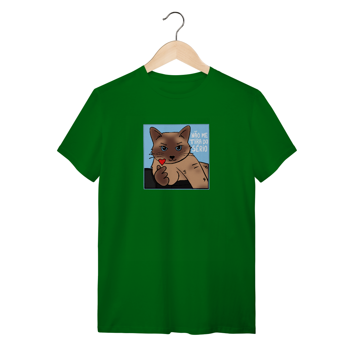 Mostre sua "catitude" com a camiseta Catmosfera "NÃO ME TIRA DO SÉRIO"! Ideal para gateiros com senso de humor. Vista sua paixão por gatos com sarcasmo e estilo. Conforto e originalidade em uma só peça!